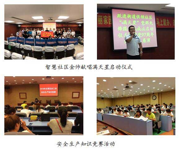 積極參加由遼陽市人力資源和社會保障局、遼陽市總工會、遼陽市企業(yè)聯(lián)合會/企業(yè)家協(xié)會、遼陽市工商業(yè)聯(lián)合會共同承辦的遼陽市2018“集中要約活動”暨模范勞動關(guān)系和諧企業(yè)評選會議;參加由白塔區(qū)總工會組織的安全生產(chǎn)知識競賽活動;參加躍進(jìn)街道供銷社區(qū)“滿天星”黨群先鋒服務(wù)隊(duì)成立啟動儀式;參加躍進(jìn)街道組織的“安康杯”競賽活動。