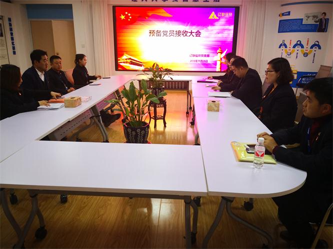 2018年11月26日下午,遼聯信息黨支部在多功能廳召開接收預備黨員支部大會。本次大會主題為研究并接收信息技術總監侯振興同志、服務外包人力總監柏苓同志和總經理助理武麗娜同志加入黨組織成為中共預備黨員。