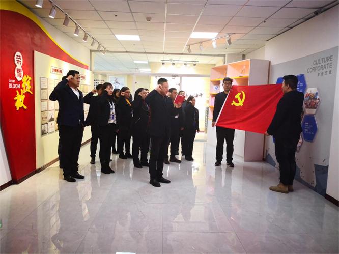 最后,黨支部新黨員在火紅的黨旗下集體高舉右手莊嚴宣誓,通過重溫入黨誓詞,使黨員內心充滿激情和崇高追求,宣誓時的莊嚴承諾和堅定決心,有效增強了自身的責任感和使命意識。