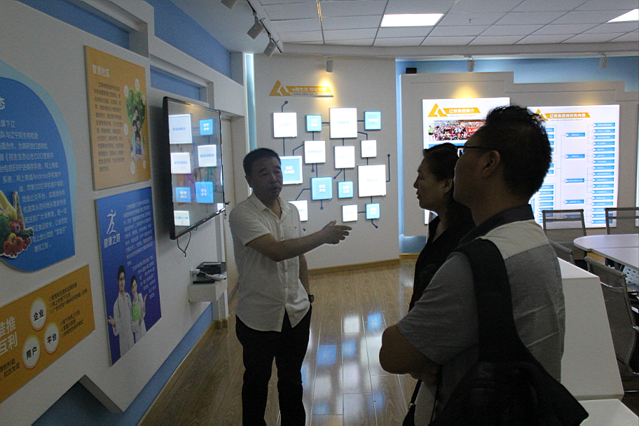 曹玉學(xué)董事長首先對王淑英董事長一行來集團洽談合作事宜表示歡迎,向客人介紹了集團重點項目研發(fā)運營情況和集團產(chǎn)業(yè)布局、上市情況、智慧城市模式等內(nèi)容。關(guān)于智慧城市建設(shè)思路,集團推出的智慧城市思路是全國獨創(chuàng)的以“一數(shù)據(jù)兩平臺”為基礎(chǔ)建設(shè)智慧城市模型,即給政府創(chuàng)收,又不用政府投資就可建成大數(shù)據(jù)中心,從而實現(xiàn)智慧城市建設(shè)總體規(guī)劃。即包括大數(shù)據(jù)中心云計算服務(wù),又涵蓋智慧廳、“饞貓?zhí)靥亍碧禺a(chǎn)電商雙平臺落地項目建設(shè),實現(xiàn)了政企互動,政民結(jié)合,民企雙贏的智慧局面。關(guān)于智慧廳運營特點和功能,智慧廳已實現(xiàn)四級政務(wù)通知(市級、區(qū)級、街道、杜區(qū))、社區(qū)電子網(wǎng)格化管理、各委辦局信息平臺鏈接辦理各種手續(xù)等電子政務(wù)功能;智慧廳的大健康板塊為居民免費體檢,送藥上門,并免費向老人贈送智能手表,實現(xiàn)居家養(yǎng)老無憂,同時與醫(yī)院無縫對接,實現(xiàn)直接住院治療;智慧廳的居民生活保障功能,可實現(xiàn)各種信息送達(dá)、免費送快遞;智慧廳引進(jìn)金融業(yè)務(wù),實現(xiàn)家門口的銀行,足不出戶即可存取錢;智慧廳通訊業(yè)務(wù)可以直接辦理寬帶及電話卡,足不出戶即可交水電煤氣等各種費用;智慧廳“饞貓?zhí)靥亍蓖撂禺a(chǎn)電商平臺,可以使居民足不出戶即可體驗嘗鮮各種認(rèn)證商品;智慧廳設(shè)立創(chuàng)客空間,可以為創(chuàng)業(yè)人員提供所需的場地、培訓(xùn)、工具,以及產(chǎn)品,促進(jìn)“大眾創(chuàng)業(yè)、萬眾創(chuàng)新”的實現(xiàn)。
