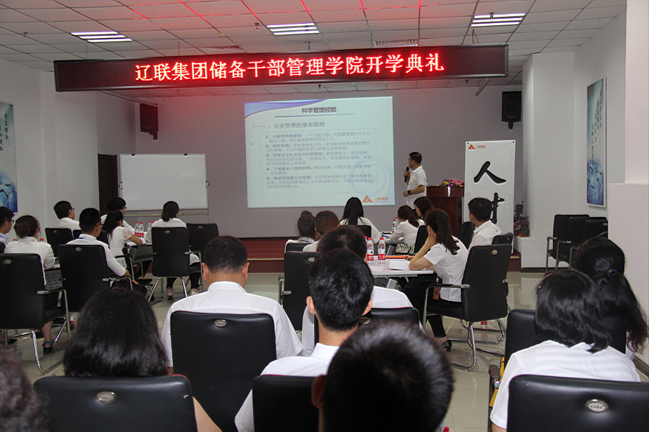 7月16日下午13:30,遼聯(lián)集團(tuán)儲(chǔ)備干部管理學(xué)院成立暨開(kāi)學(xué)典禮在集團(tuán)會(huì)議中心隆重舉行,管理學(xué)院院長(zhǎng)遼聯(lián)集團(tuán)董事長(zhǎng)曹玉學(xué)等十二位集團(tuán)總監(jiān)級(jí)別以上高管領(lǐng)導(dǎo)及十九名來(lái)自集團(tuán)各分公司的儲(chǔ)備干部人才暨學(xué)院第一期學(xué)員參加了本次開(kāi)學(xué)典禮。