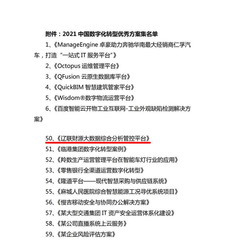 2022年1月18日,“2021第五屆中國軟件和信息服務業年度風云榜”評選結果正式發布。華為、騰訊、科大訊飛、神州數碼、中興通訊等企業獲評“2021中國軟件和信息服務業十大領軍企業”。遼聯信息榮獲“2021中國軟件和信息服務業年度影響力企業”,遼聯財源大數據綜合分析管控平臺入選《2021中國大數據應用樣板100例》。