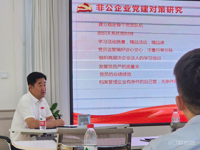 組織一次專題黨課,6月30日上午,在遼聯集團多功能廳同步參加市工商聯非公黨委組織黨的二十大精神學習及所屬商會黨建工作培訓,市工商聯非公黨委邀請市委黨校黨史黨建教研室主任、副教授史爭偉和遼聯集團黨支部書記、副總經理武東授課。史爭偉教授以《全面建設社會主義現代化國家的行動綱領》為題,對黨的二十大報告精神做了精彩解讀;武東同志結合非公企業黨建工作經驗,對如何開展基層黨建工作做了深入的分析研究和經驗分享;組織參訓人員參觀了遼聯集團黨員活動室和黨建工作室。參訓人員紛紛表示,通過此次培訓活動,受益匪淺、收獲頗豐。遼聯集團董事長曹玉學等市工商聯非公黨委成員、各商會黨支部書記、各商會中共黨員30多人參加了此次培訓。市工商聯非公黨委副書記劉海濤同志主持培訓活動,并對市工商聯系統各商會黨組織進一步學習宣傳黨的二十大精神和加強商會黨組織全面建設提出了目標要求。市工商聯會員科科長王曉剛參加培訓會議。