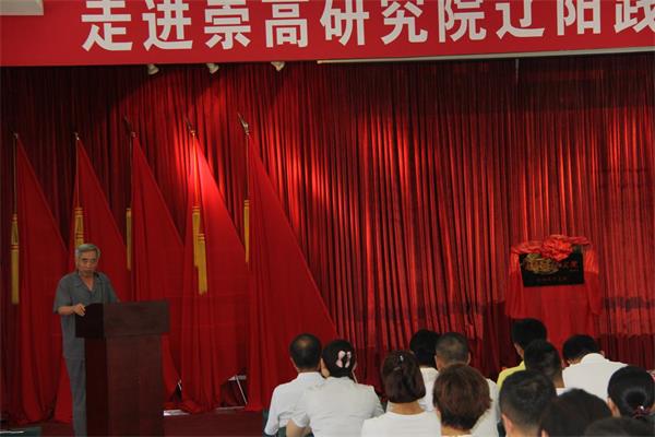 2017年6月19日,北京走進崇高研究院遼陽踐行基地揭牌儀式在遼陽市白塔區政府會議中心隆重舉行,全國婦聯原副主席、國家環保總局原副局長、北京走進崇高研究院汪紀戎顧問,解放軍裝備指揮學院原副院長、走進崇高研究院院長、少將賀茂之,秘書長譚宏偉,特聘專家袁方臣,王兆健,遼陽市委常委、宣傳部張東部長,市婦聯主席王心宏,共青團市委書記劉芳,白塔區委蔡鴻源書記,白塔區委楚俊生副書記;白塔區委宣傳部王曉飛部長等一行有關領導出席了儀式并講話,儀式由走進崇高研究院遼陽踐行基地主任、遼陽愛心企業聯盟理事長、遼聯電商董事長曹玉學主持。 遼陽愛心企業聯盟企業負責人和200余名員工代表參加了揭牌儀式,這是北京走進崇高研究院在全國建立的第67個踐行基地。